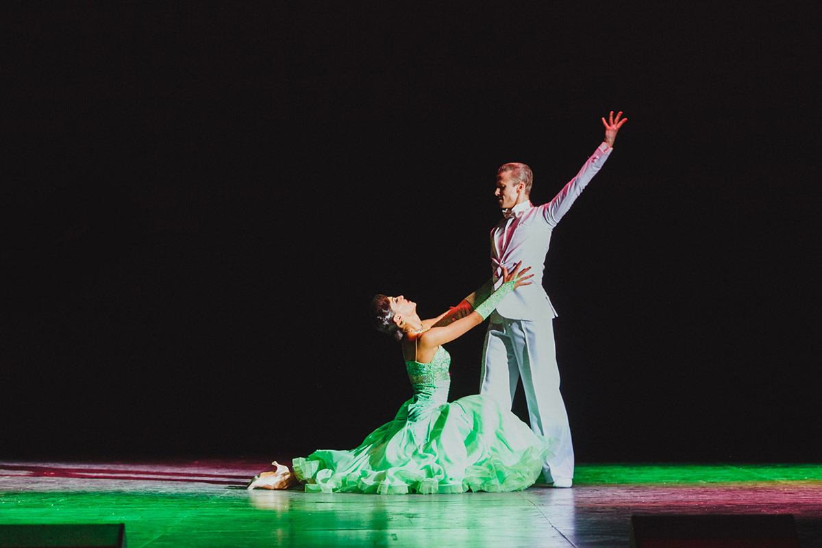 Хореография спектакля – это яркий коктейль бальных танцев европейской (танго, фокстрот, вальс, квикстеп) и латиноамериканской (самба, ча-ча-ча, румба, джайв) программ. Драматургия постановки, сложившаяся под влиянием эстетики мюзик-холла, жанров водевиля, бурлеска и вообще театра Бродвея, и невероятный сплав зарубежной киномузыки, блюза, соула и джаза погрузят вас в атмосферу большого американского города начала XX века.
